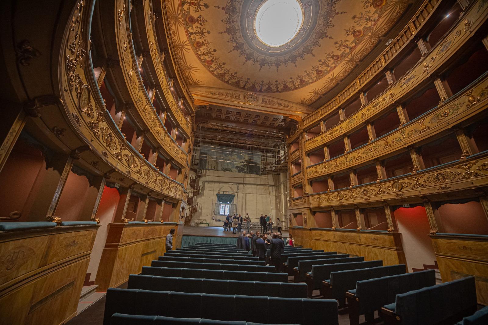 The concert at Teatro Pavone in Perugia brought together music and stage design in a dialogue between sound and image. The performance, under the vocal direction of soprano Ljuba Kazarnovskaja, featured the orchestra conducted by Daniele Tirilli.